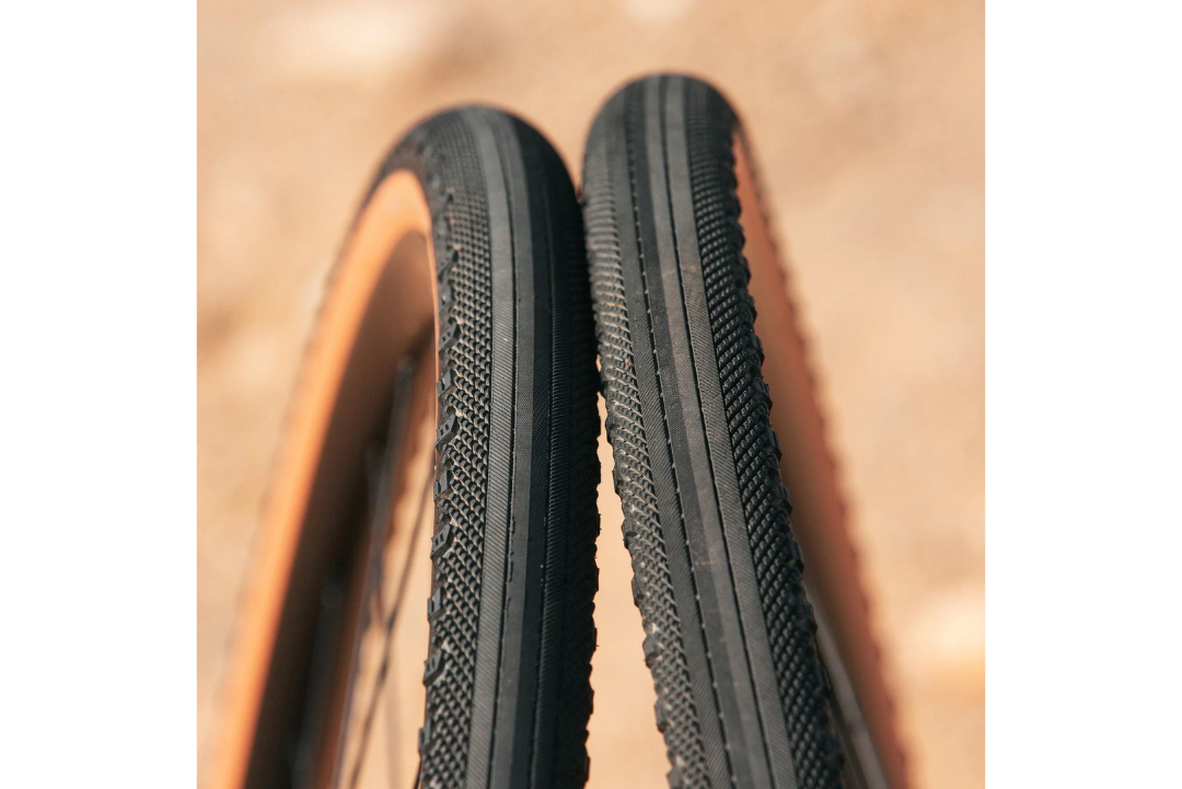 Kimberlite is a precious rock that often contains an even more valuable mineral — diamonds. The American Classic Kimberlite is as valuable to gravel riders as its namesake. For fast adventures on both pavement and gravel, look to the Kimberlite tire. This go-anywhere tire performs like a road tire on pavement and hooks up on hardpack dirt surfaces. The semi-slick tread starts with a smooth center for decreased rolling resistance on smoother surfaces, transitions through progressively more aggressive zones for maximum lateral traction and wraps up with robust edge knobs for dependable cornering. The Tubeless 120 TPI casing provides the ultimate construction for speed and comfort, and the Stage 5S Armor provides a tire that is lighter, faster, and more cut, tear, and abrasion resistant.