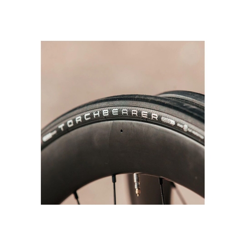 The Torchbearer is available in both Tubeless Ready and tube-type constructions. The Tubeless Ready version utilizes Stage 4S Armor construction which combines three separate components of flat protection including a 120 TPI skin, a lightweight Nylon105 belt and our anti-cut deflecting skin to boost confidence and durability on long rides and in any weather. The tube type version uses a Stage 4 Armor construction which combines two separate components of flat protection including a lightweight puncture resistant Nylon105 belt and our anti-cut deflecting skin to boost confidence and durability on long rides and in any weather. And the 120 TPI casing in both versions reduces road vibration for long distance comfort over rougher terrain