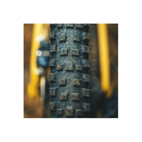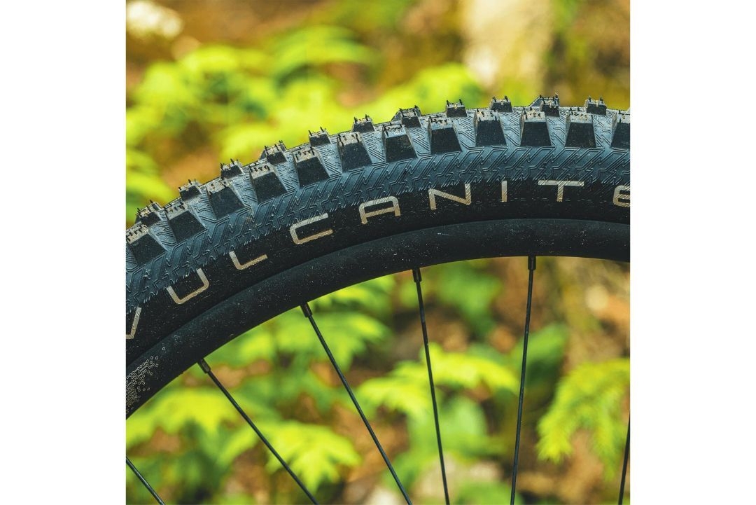 The Vulcanite is a go-anywhere tire featuring tall knobs for traction in loose terrain, hatch marks and siping for additional traction in packed conditions, and ramped central knobs for straight-line speed. And its semi-open tread block layout reduces debris build-up while increasing bite on rocky terrain and roots.
