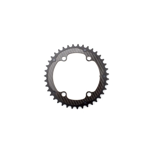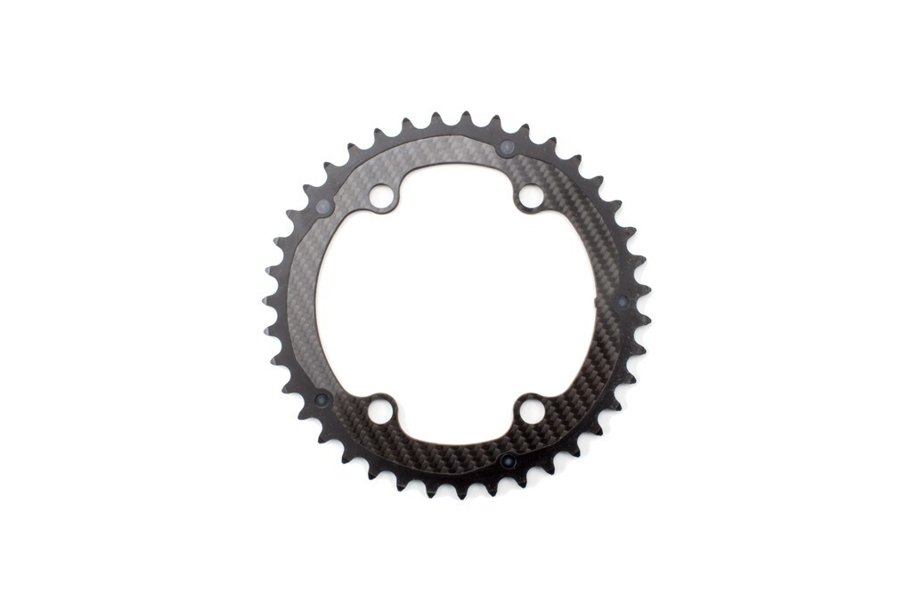 Chainring in aluminium alloy AL7075-T6, 3K glossy structural carbon fiber with Titanium Grade 5 pins.