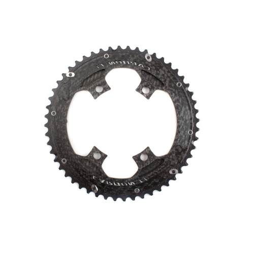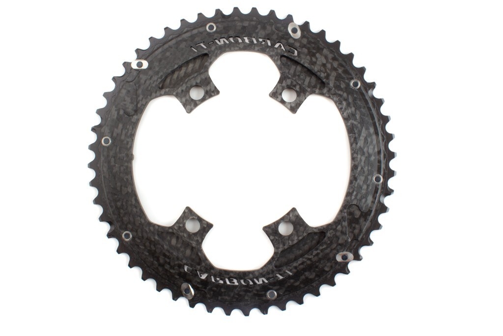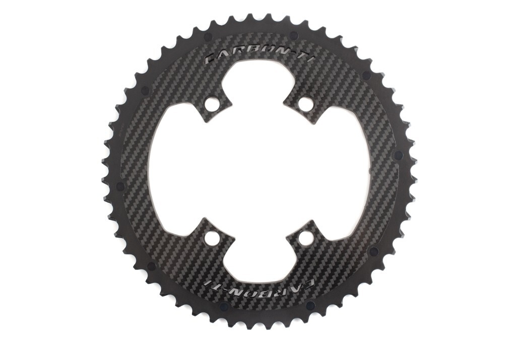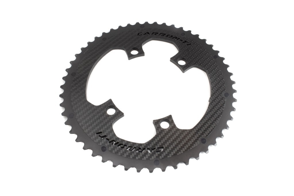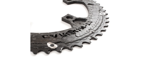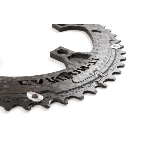 Chainring in AL7075-T6 aluminum alloy, 3K glossy structural carbon fiber with Titanium Grade 5 elements.