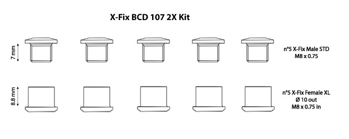 AL7075 chainring fixing bolts, Road kit specific for X-Carboring BCD 107 X-AXS double chainrings. It contains 5 males standard length and 5 females long length.