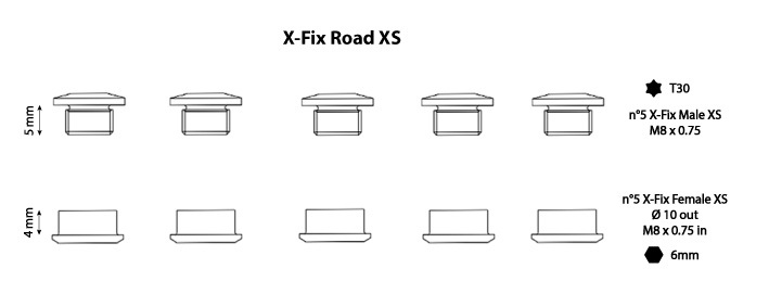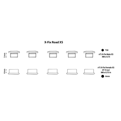 AL7075 chainring fixing bolts, kit suitable for X-SingleCarbon (except for BCD 107 models). It contains 5 males and 5 females short length.