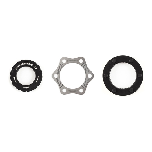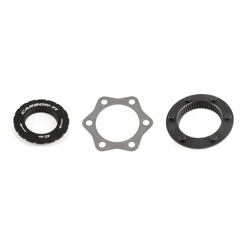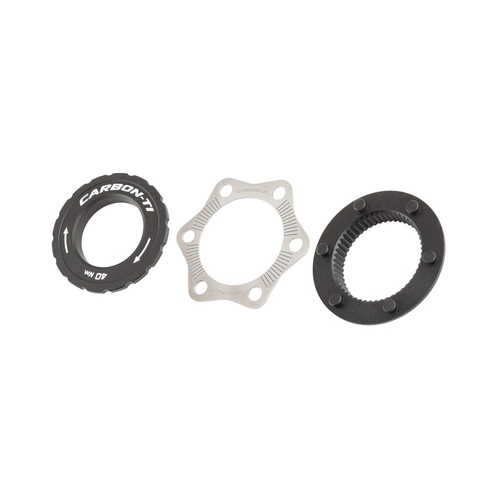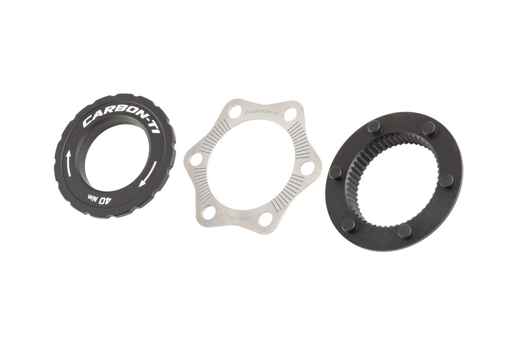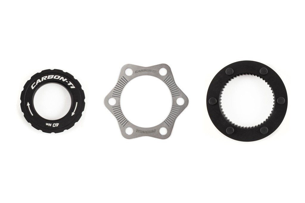 Specific adapter developed by Carbon-Ti that guarantees direct and efficient compatibility on Center Lock hubs. The adapter is included with every X-Rotor SteelCarbon 3 Center Lock disc and comes with a high-quality, laser-etched titanium protection plate that perfectly fits into the carbon profile. The X-Rotor Center Lock Adapter kit can be purchased separately and fit the previous model X-Rotor SteelCarbon 2 or discs of other brands. The lockring is characterized by an extremely low profile that offers wide compatibility with hubs equipped with 12, 15, or 20 mm through axles.