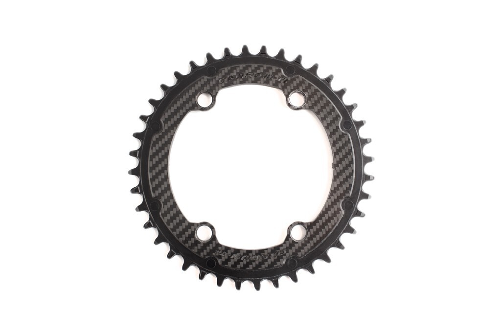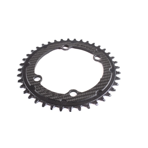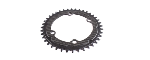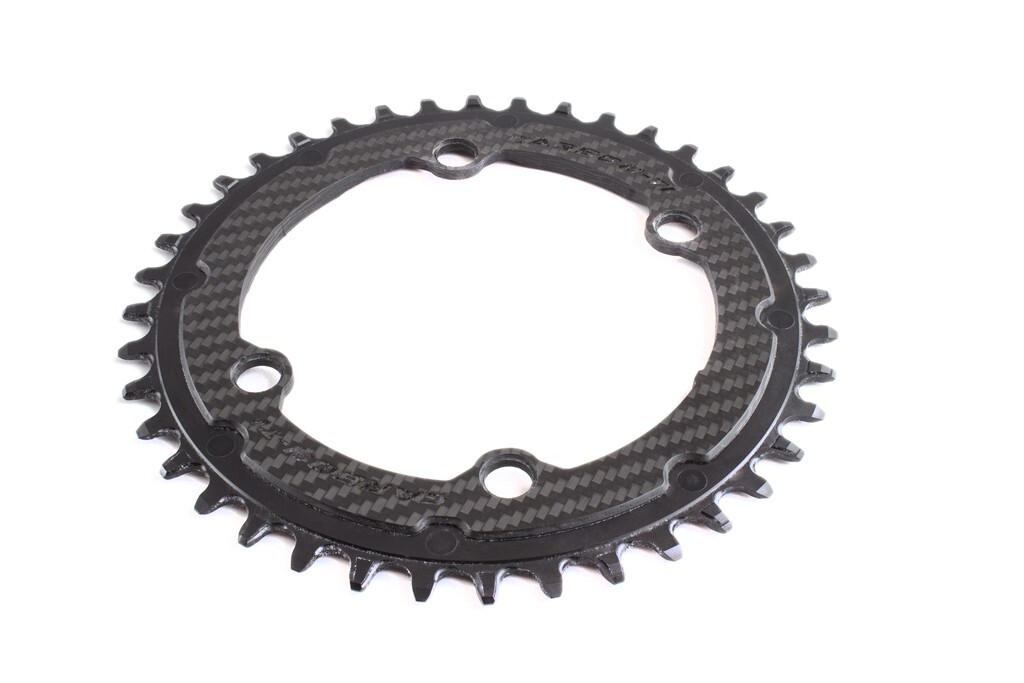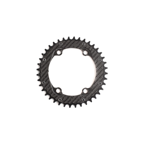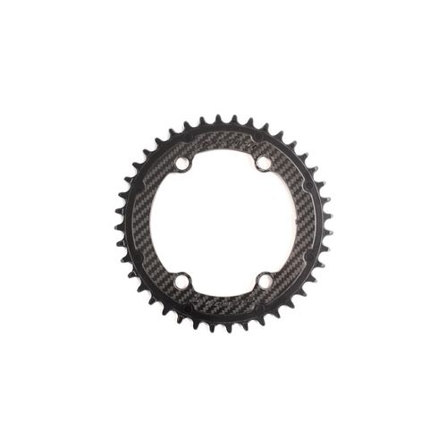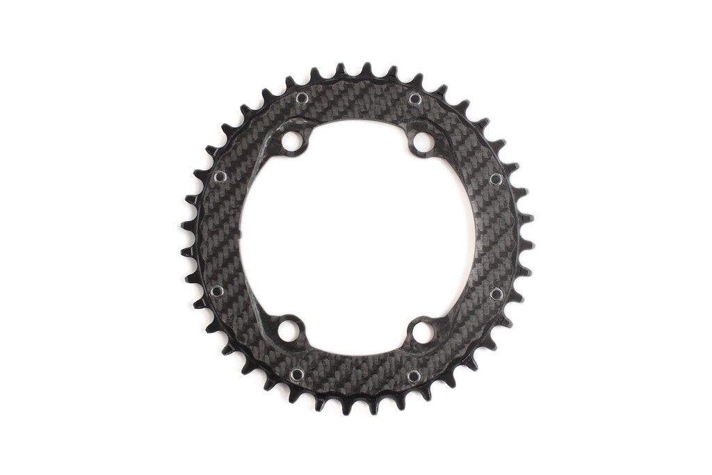 Chainring in AL7075-T6 aluminum alloy, 3K glossy structural carbon fiber with Titanium Grade 5 fixing elements.