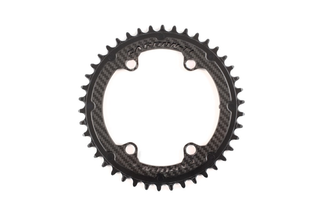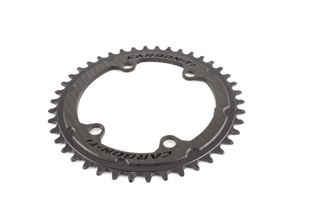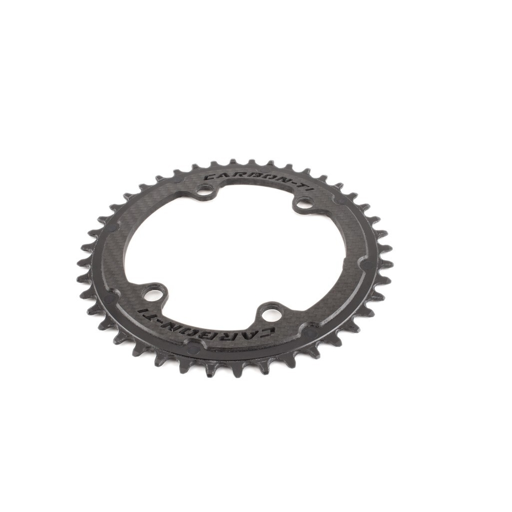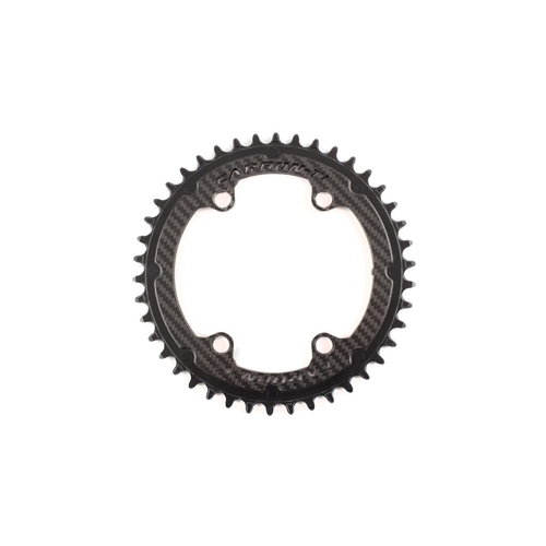 Chainring in AL7075-T6 aluminum alloy, 3K glossy structural carbon fiber with Titanium Grade 5 fixing elements.