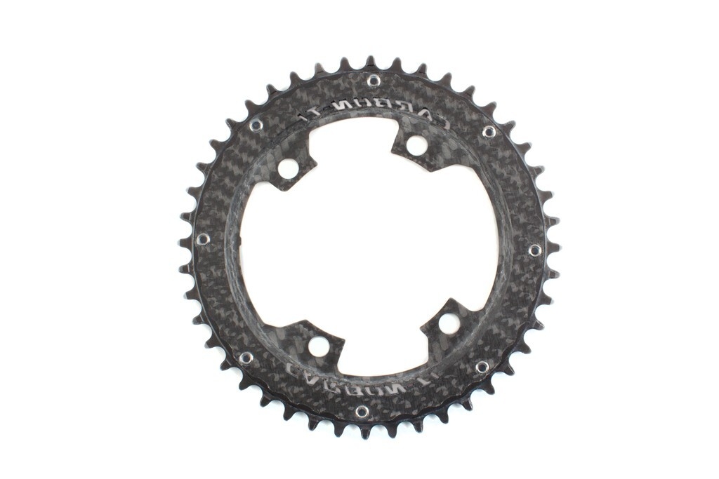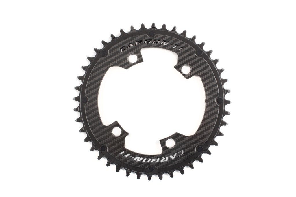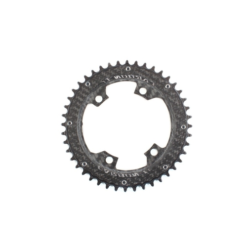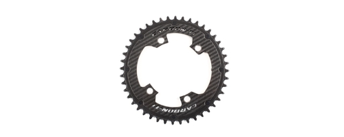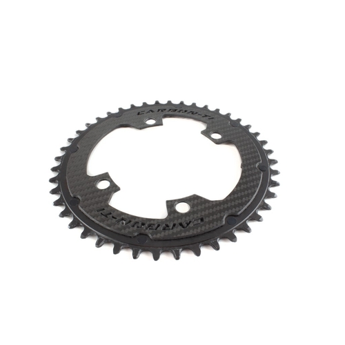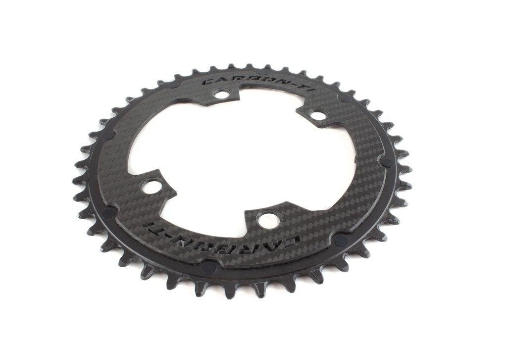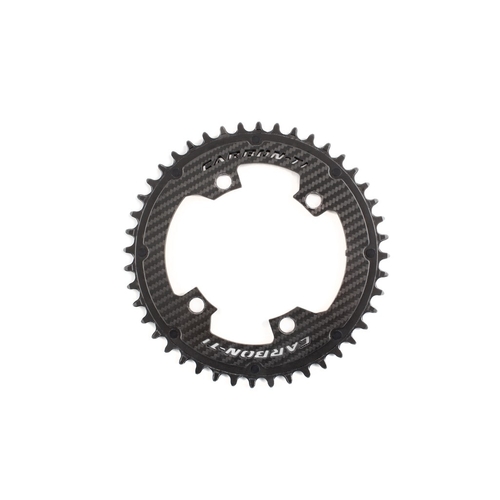 It is a chainring in AL7075-T6 aluminum alloy, with a 3K glossy structural carbon fiber having Titanium Grade 5 elements.
