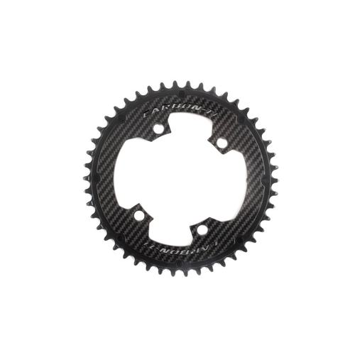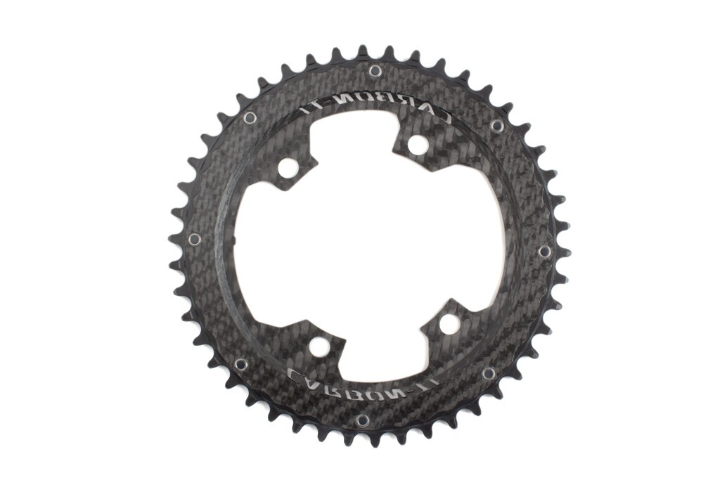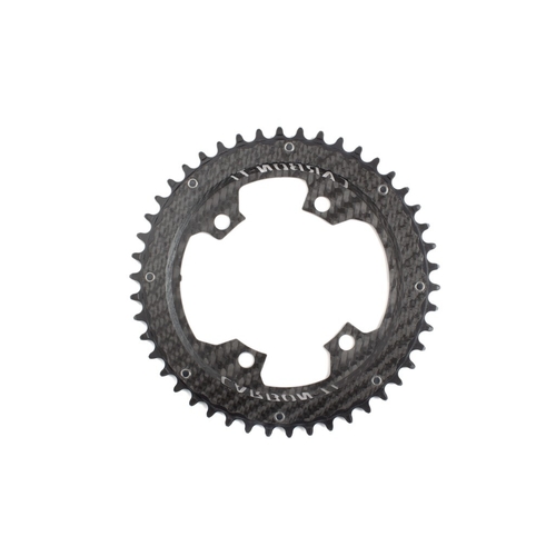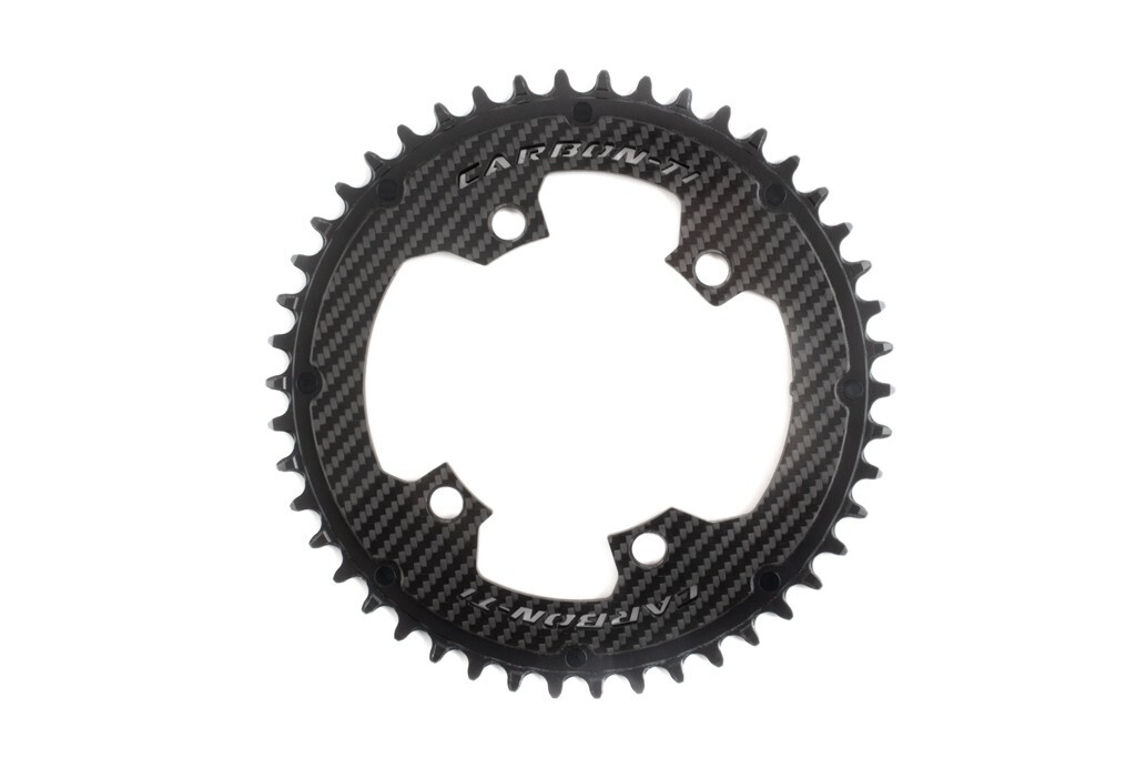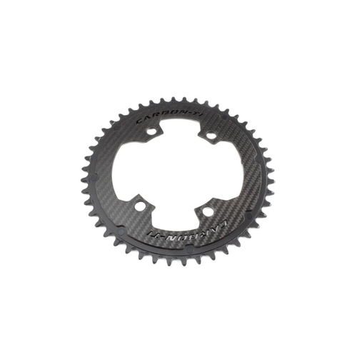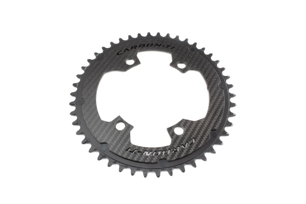 It is a chainring in AL7075-T6 aluminum alloy, with a 3K glossy structural carbon fiber having Titanium Grade 5 elements.