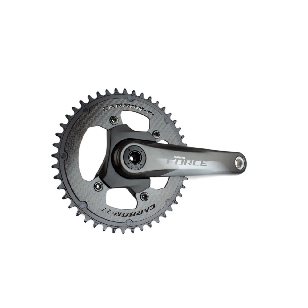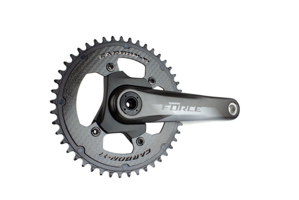 The single chainring with 107 mm BCD is compatible with SRAM Force and Rival AXS 12s cranksets and power meters.