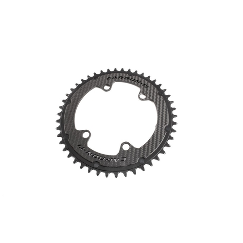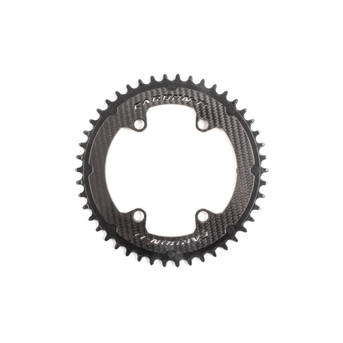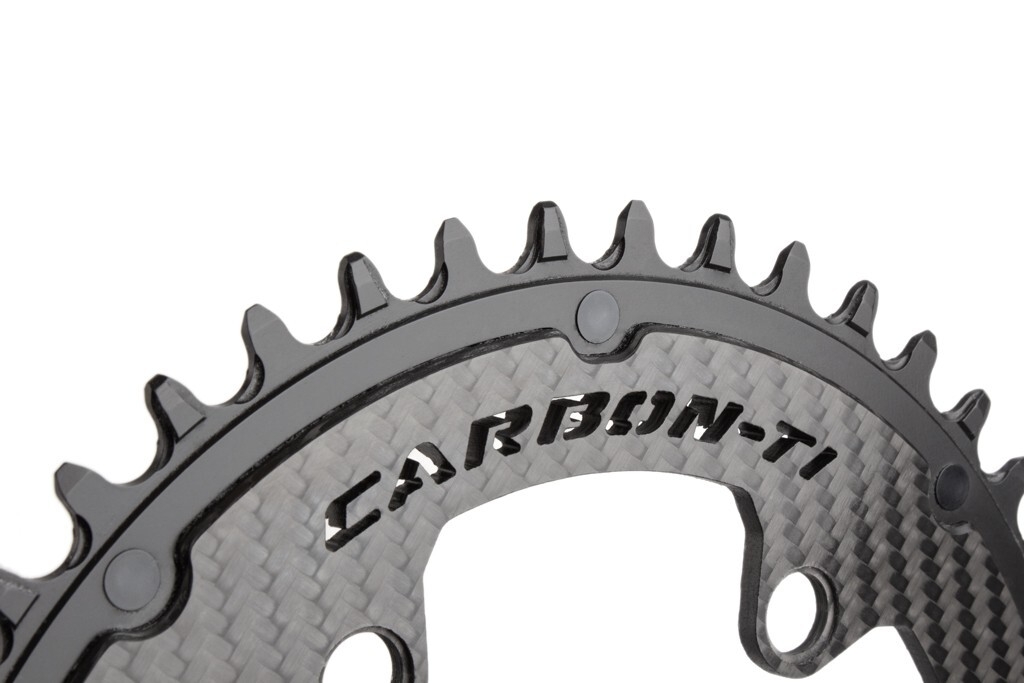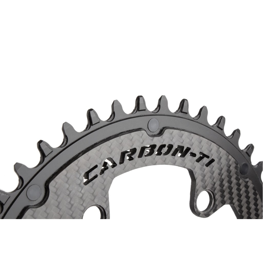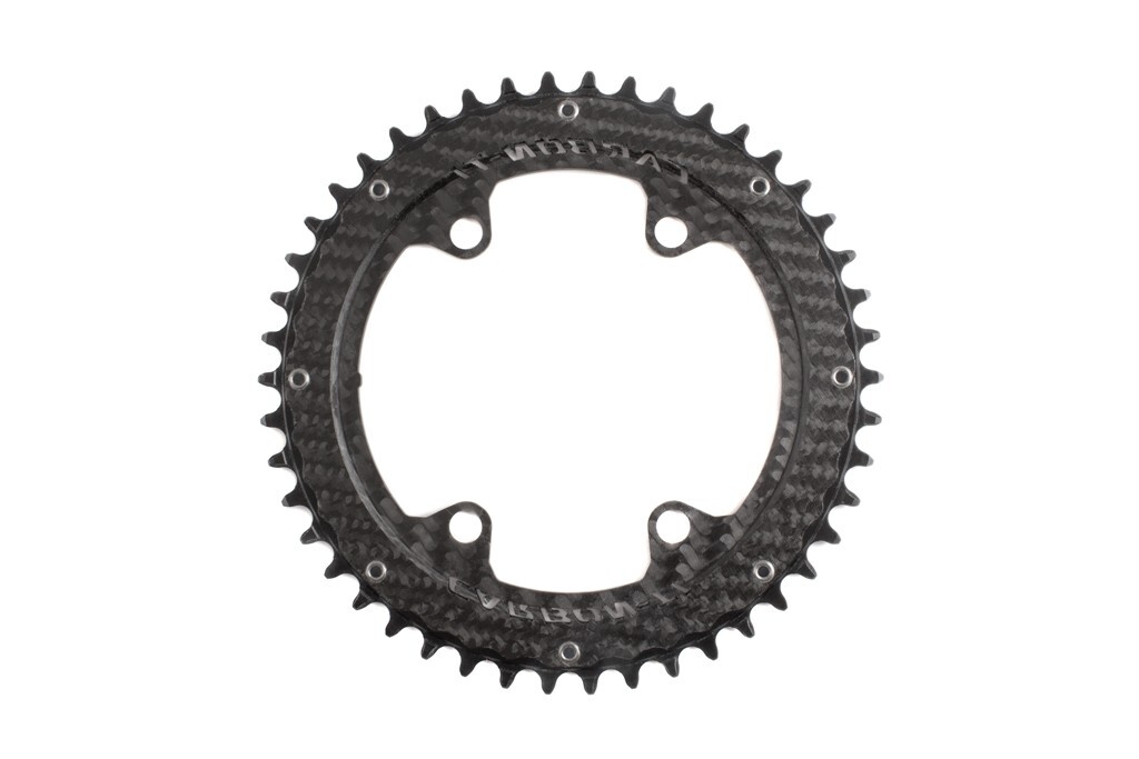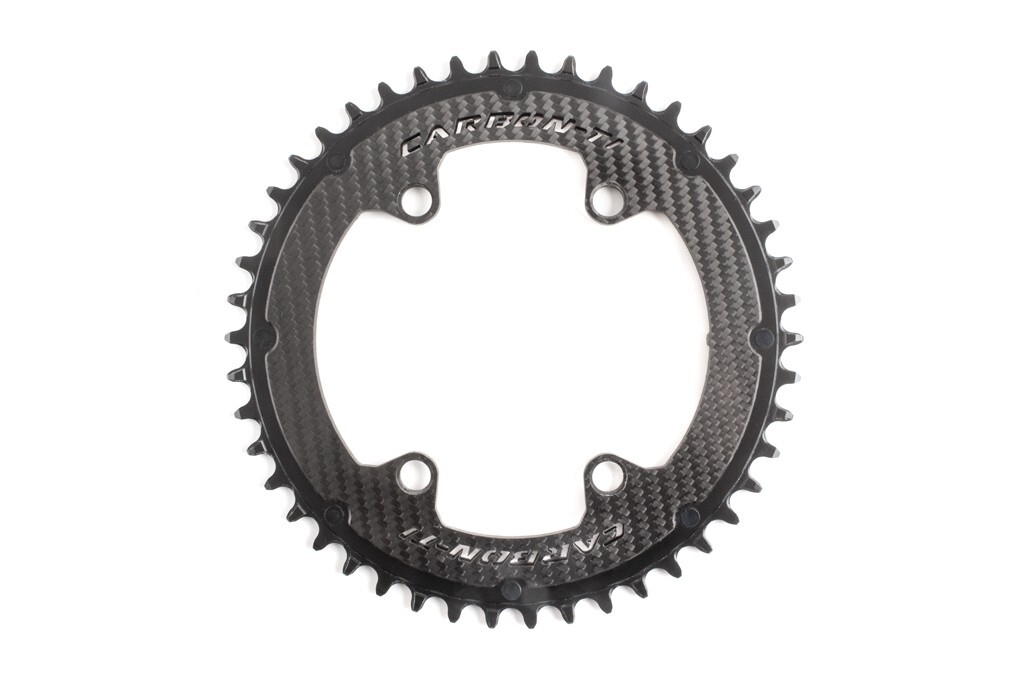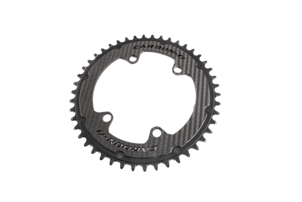 Chainring in AL7075-T6 aluminum alloy, 3K glossy structural carbon fiber with Titanium Grade 5 fixing elements.