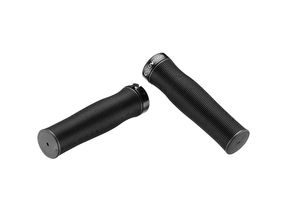 The reinforced polymer composite grip tube is easy to assemble using a single-sided clamp. The end of the grip has a reinforced base that wraps over the end of the bar to prevent cutting the grip in the event of a crash or dropping the bar on its end.
