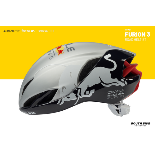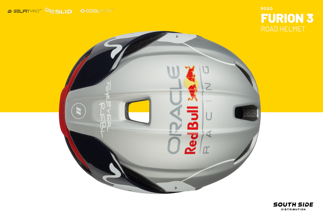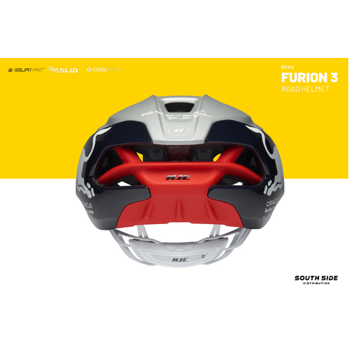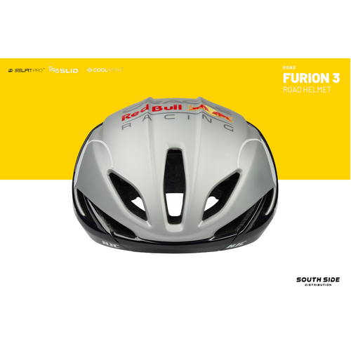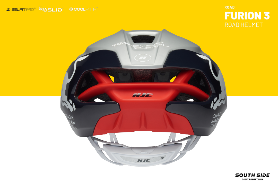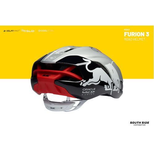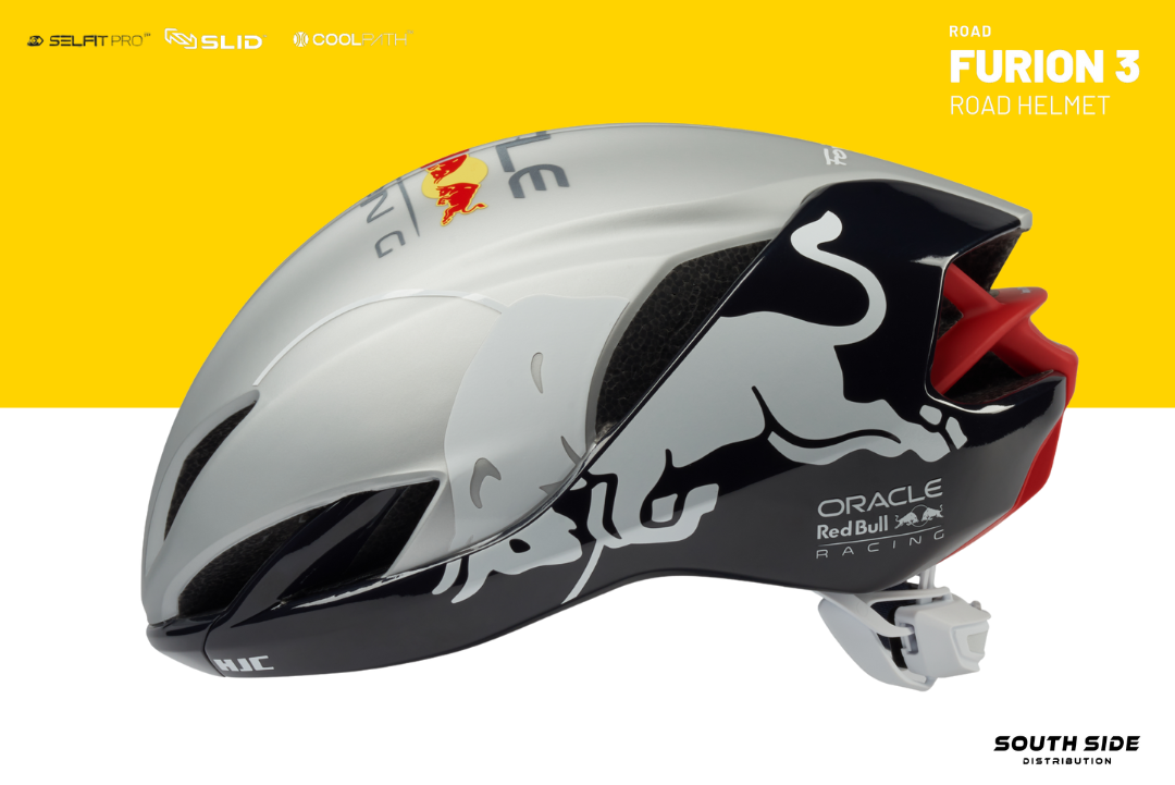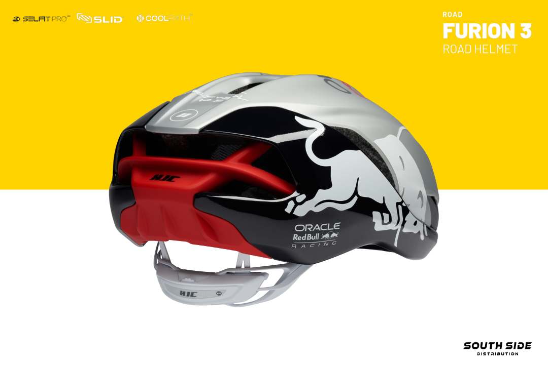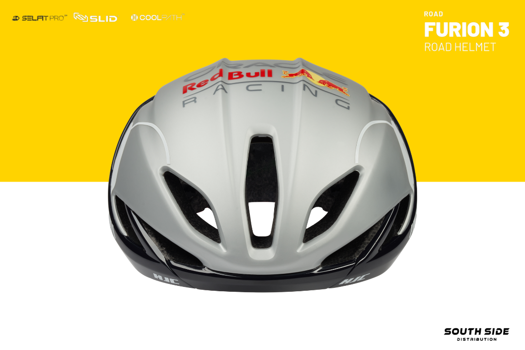 Limited Edition Red Bull FURION 3 includes HJC’s latest technologies incorporating enhanced aerodynamic design to minimize air resistance making an optimal model for sprinters who are focusing on straight power sprint. The groundbreaking SELFIT PRO™, which combines an automatic fitting system and fine-tuning function, was applied and the innovative SLID™ technology was combined which minimizes rotational impact, demonstrating HJC’s commitment to safety.