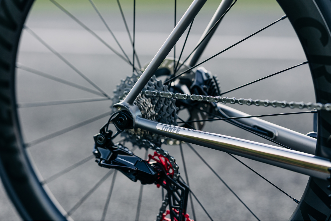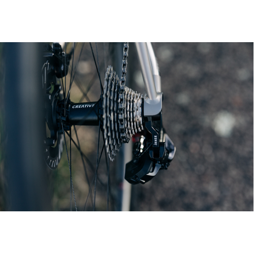 The INNER Direct Mount derailleur hanger is the work of many countless months of designing and prototyping. This hanger is used on our Initiator frameset.
