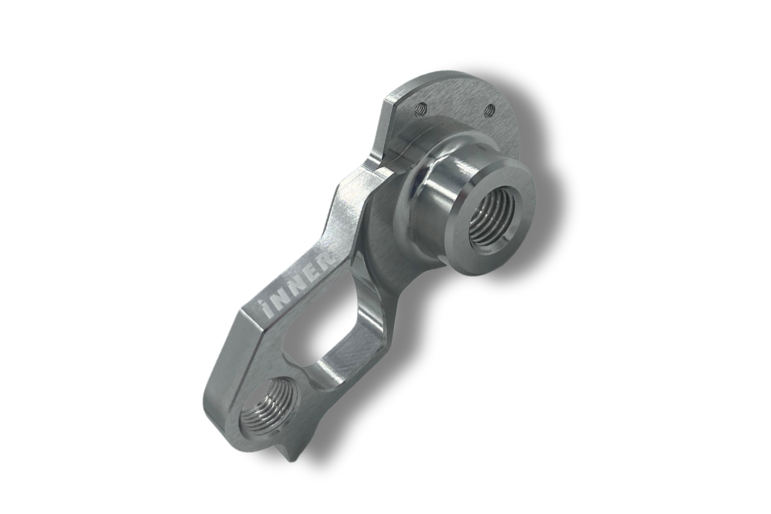 The INNER Direct Mount derailleur hanger is the work of many countless months of designing and prototyping. This hanger is used on our Initiator frameset.