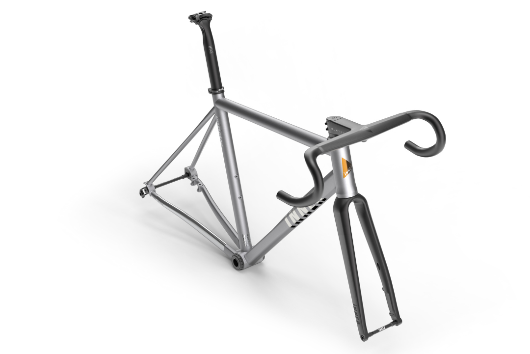 Our Initiator R8 frameset arrives ready to go, featuring a sleek INNER x BLKTEC R8 one-piece carbon cockpit & carbon-dyneema seat post.
