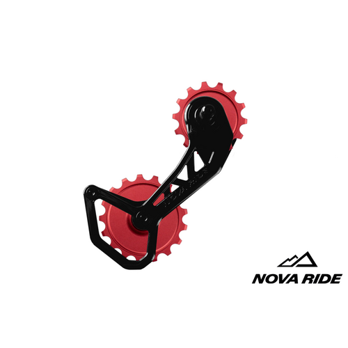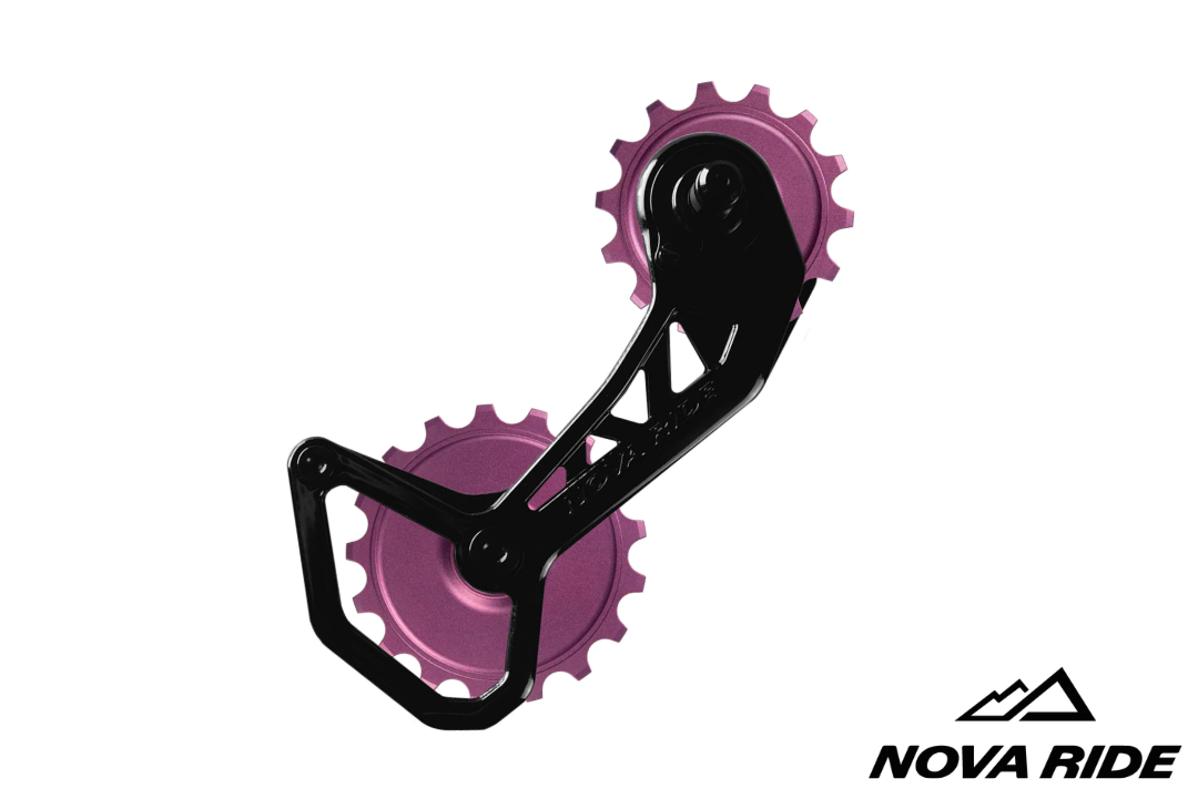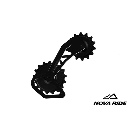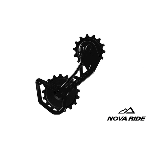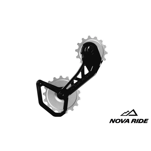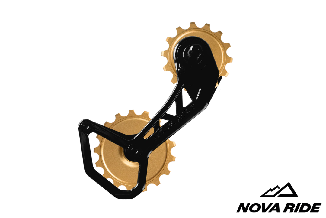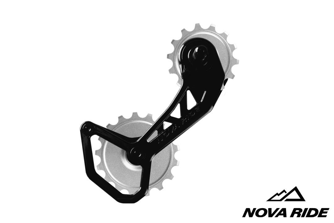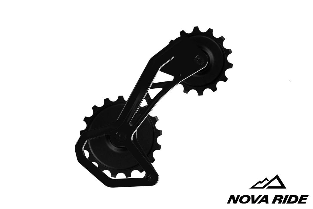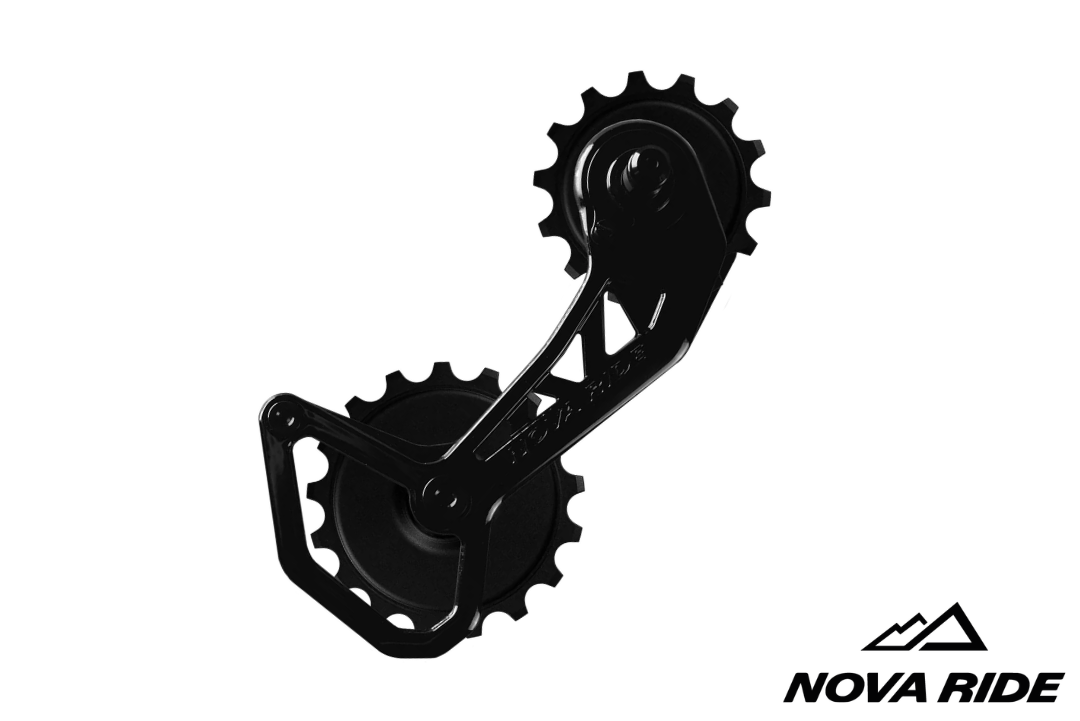 The Nova Ride EVO VS Carbon Ceramic Derailleur Cage is a premium drivetrain upgrade designed to reduce friction, improve shifting efficiency, and enhance drivetrain durability — combining a varnished (V) finish with solid pulley wheels (S) for increased stiffness and drivetrain control.