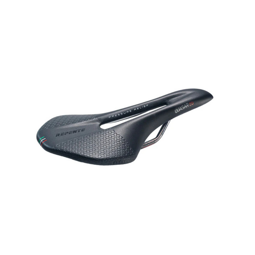 Top-class materials and technologies for a saddle that weighs less than 170 grams, designed and developed by Repente on the basis of feedback from professional athletes and the many enthusiasts who use Repente saddles on and off the road. The first saddle by the Italian brand to have a steel rather than a carbon fiber rail.