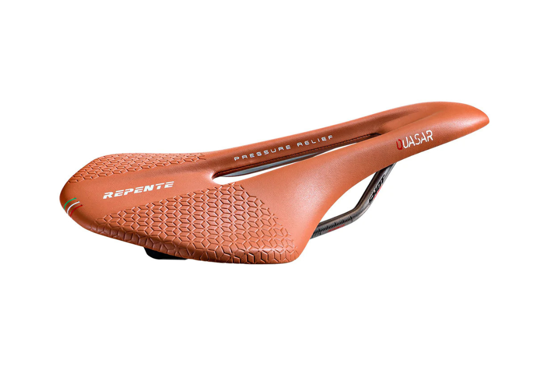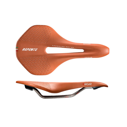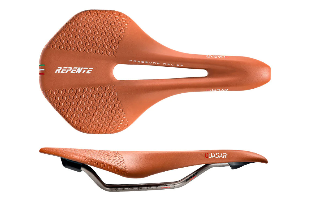 Top-class materials and technologies for a saddle that weighs less than 170 grams, designed, and developed by Repente based on feedback from professional athletes and the many enthusiasts who use Repente saddles on and off the road. The first saddle by the Italian brand to have a steel rather than a carbon fiber rail.