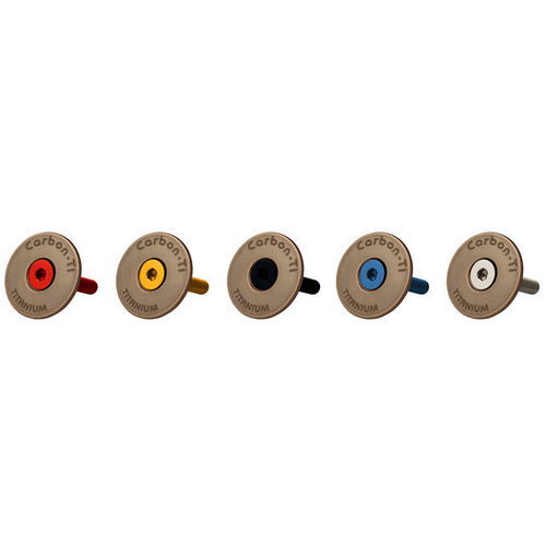 Superlight headset titanium cap, compatible with most 1 1/8" steerers, CNC machined, laser etched, supplied with a TORX 35mm Al7075-T6 anodized coloured bolt.