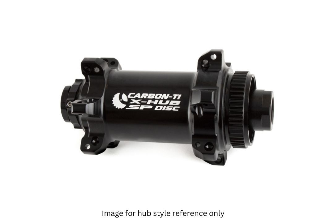 Superlight straight pull Center Lock QR12 thru axle front hub.